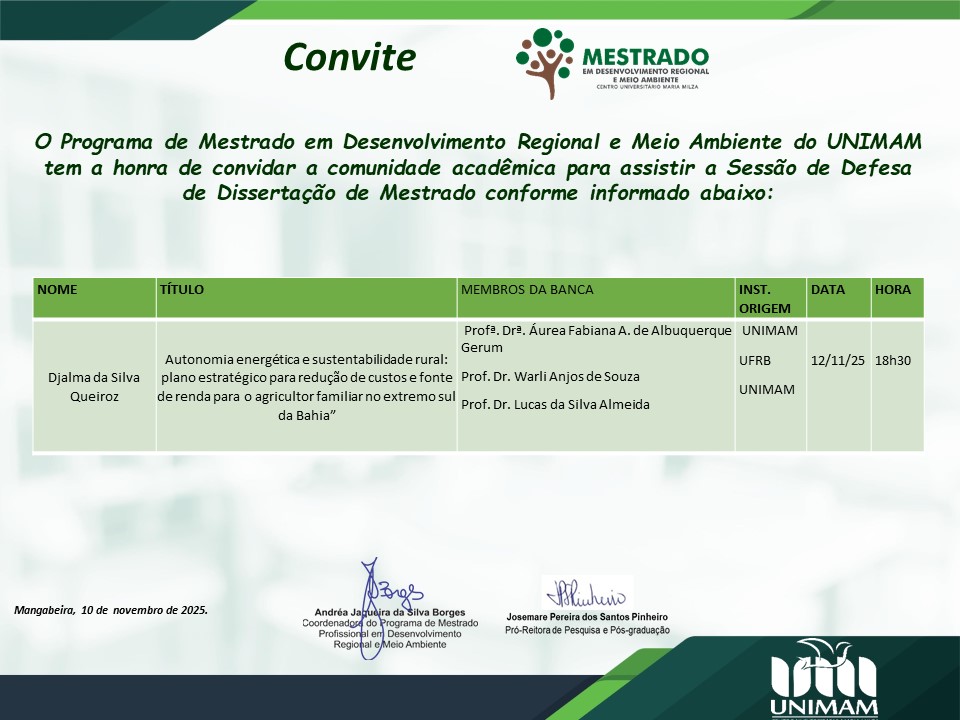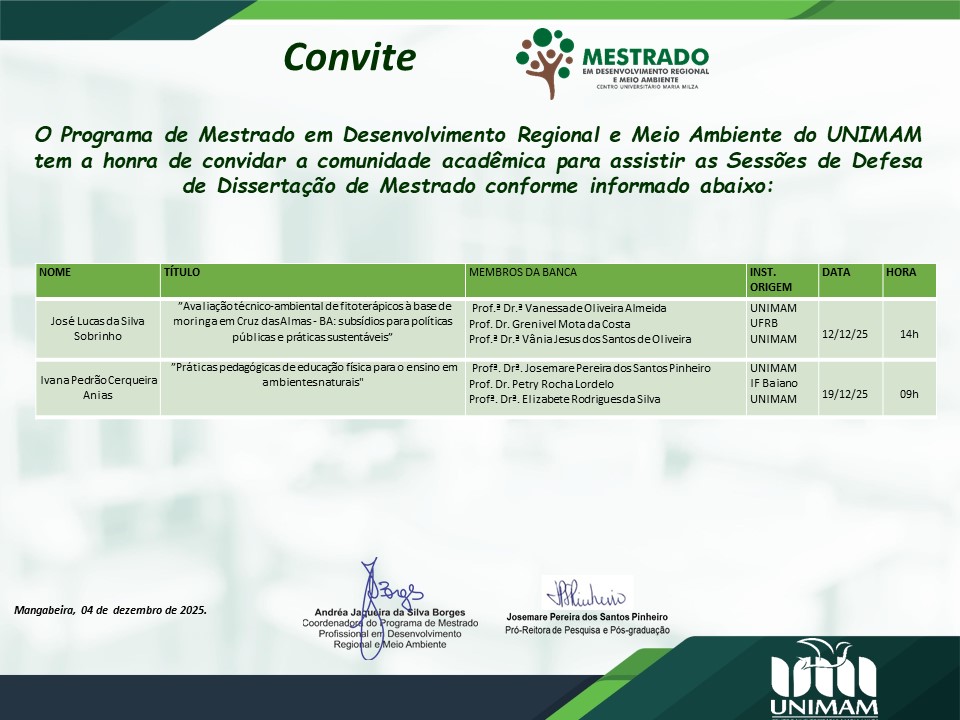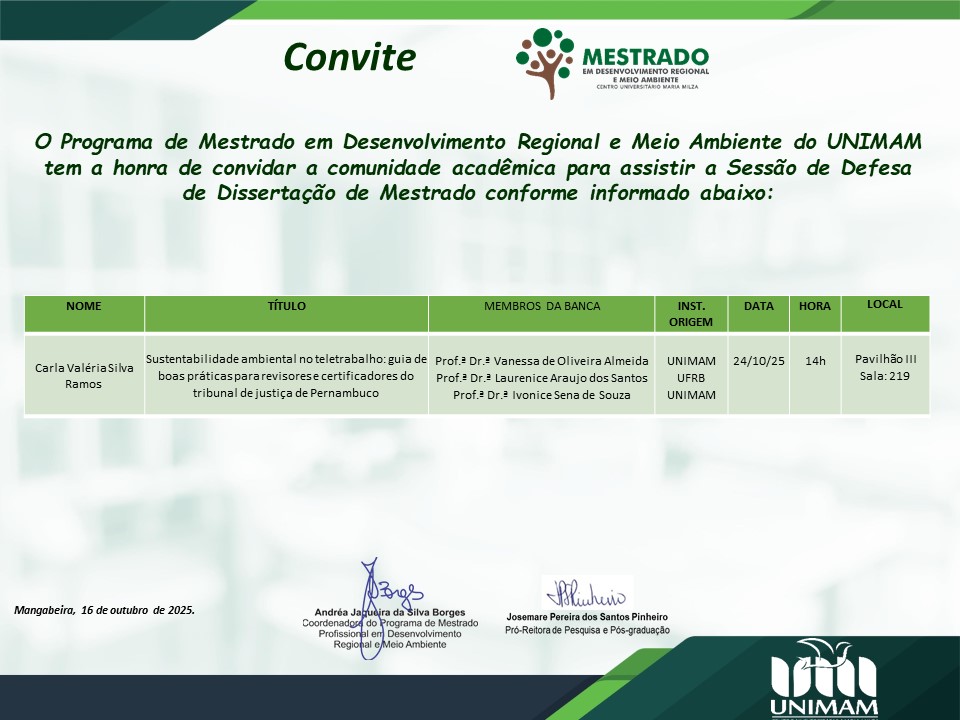 CONVITE: Sessão de Defesa de Dissertação de Mestrado